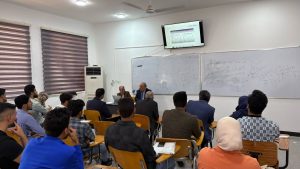 محاضرة السيد العميد كلية الادارة والاقتصاد جامعة الحلة في بناية حمورابي. يوم السبت المصادف ٢٢/٣/٢٠٢٥